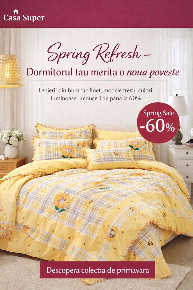 Ne dorim ca oricine, indiferent de buget, sa poata avea un dormitor frumos, curat si linistit. Selectam cu atentie fiecare produs, gandindu-ne la cum va arata patul tau cand totul e asezat perfect.