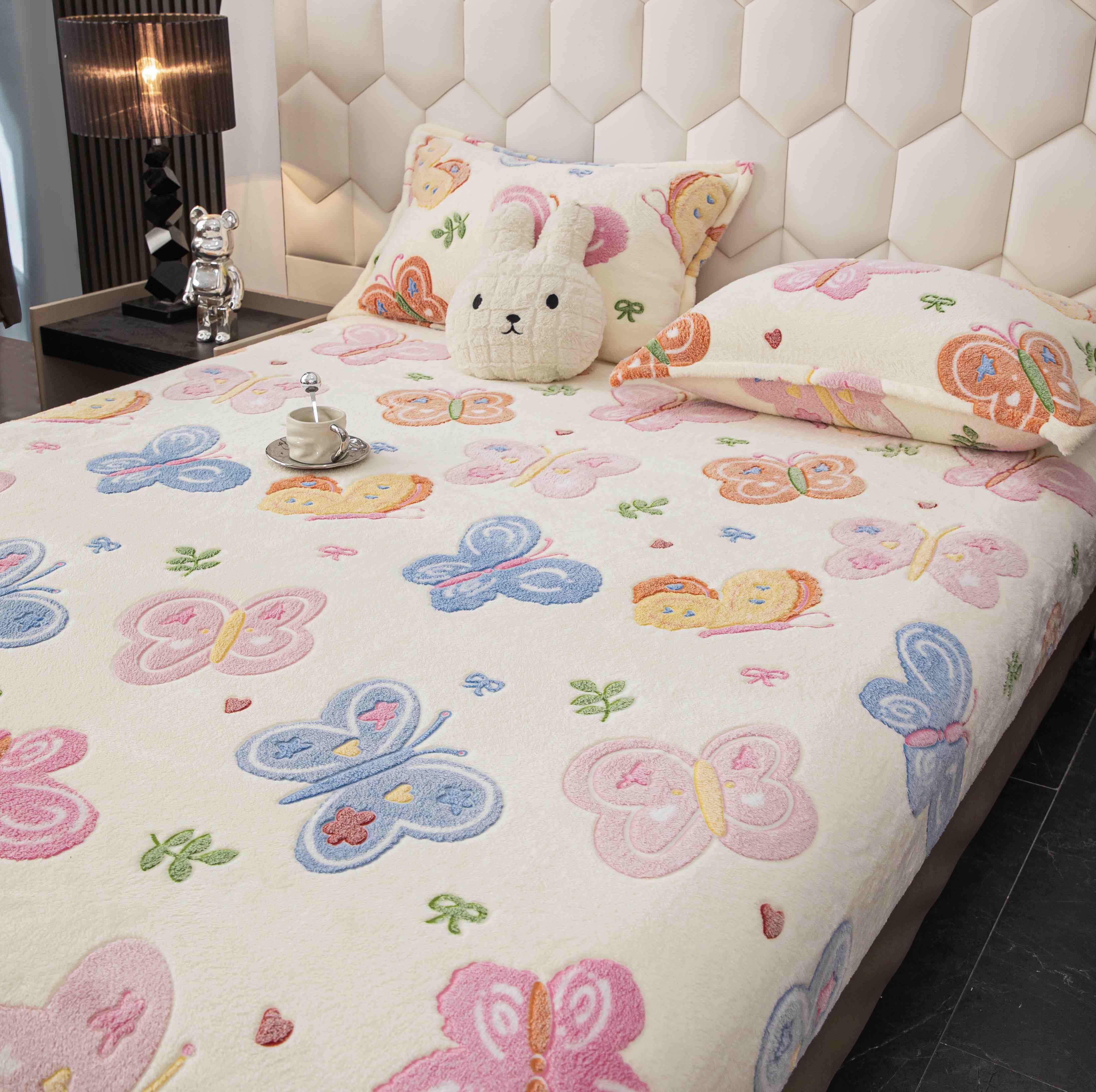 Husa Pufoasa de Pat din Catifea Matlasata + 2 Fete de Perna-Gri Deschis - Casa Super