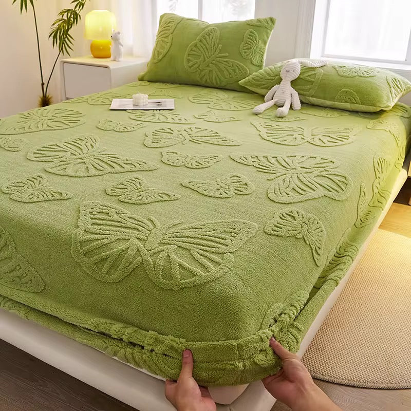 Husa Pufoasa de Pat Cocolino 180x200 cu Elastic 3 Piese +2 Fete de Perna-Vernil