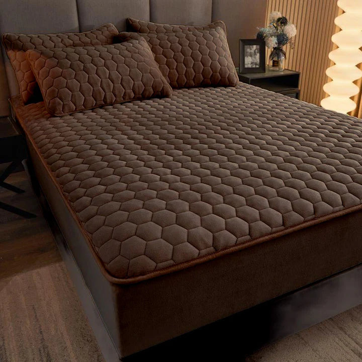 Husa Pufoasa de Pat din Catifea Matlasata+ 2 Fete de Perna - Ciocolata - Cod TP03