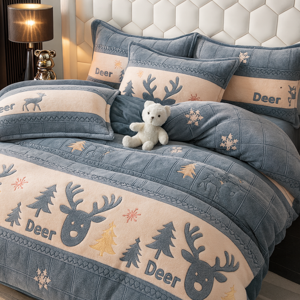 Husa Pufoasa de Pat din Catifea Matlasata + 2 Fete de Perna-Gri Deschis - Casa Super