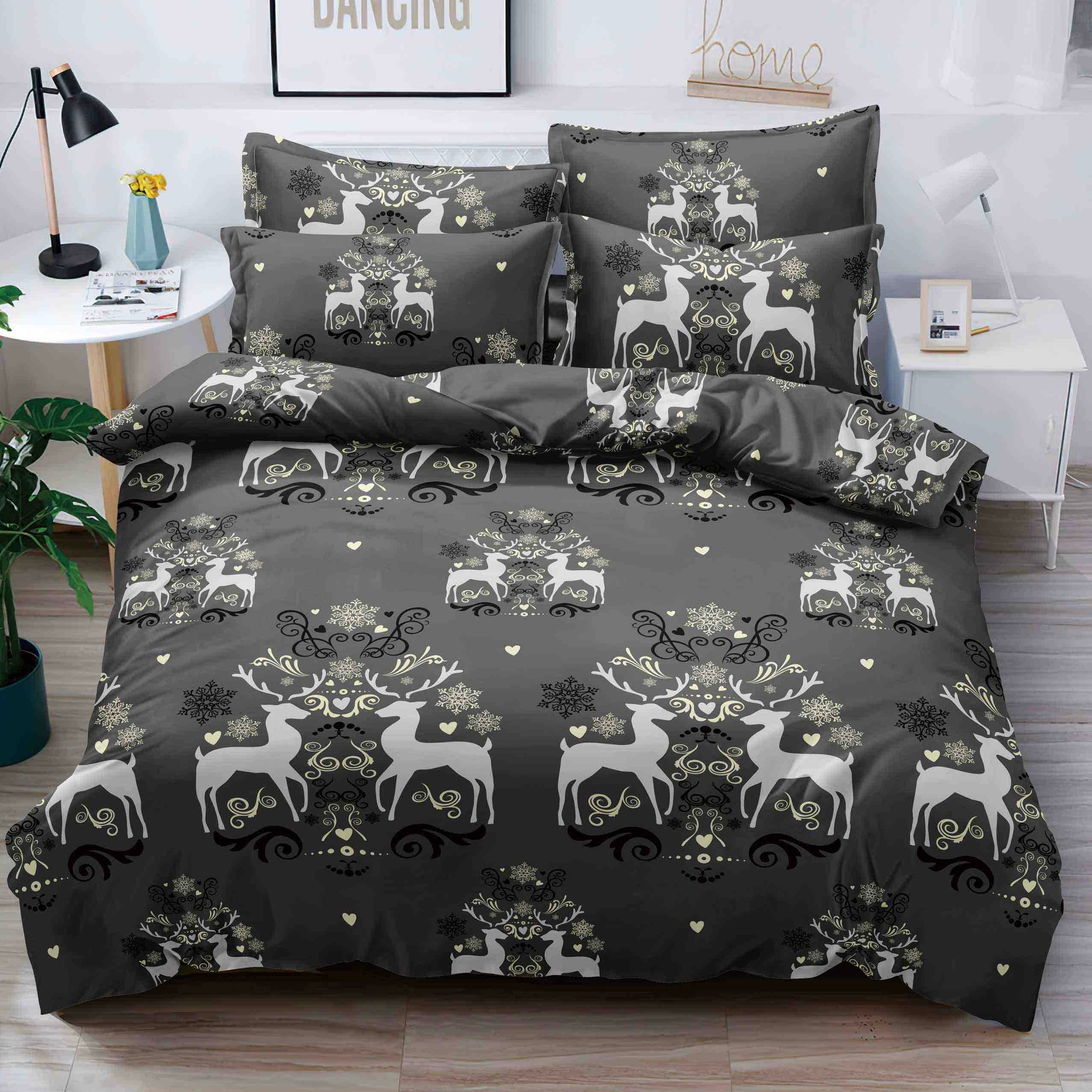 Lenjerie de Pat Dublu,Bumbac Finet 6 Piese cu Elastic,Model cu Reni ,Crăciun