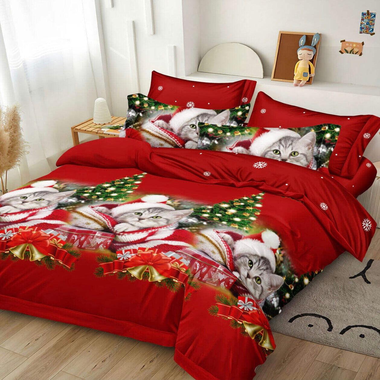 Lenjerie de Pat Dublu,Bumbac Finet 6 Piese cu Elastic,Model Crăciun - Cod ELG2