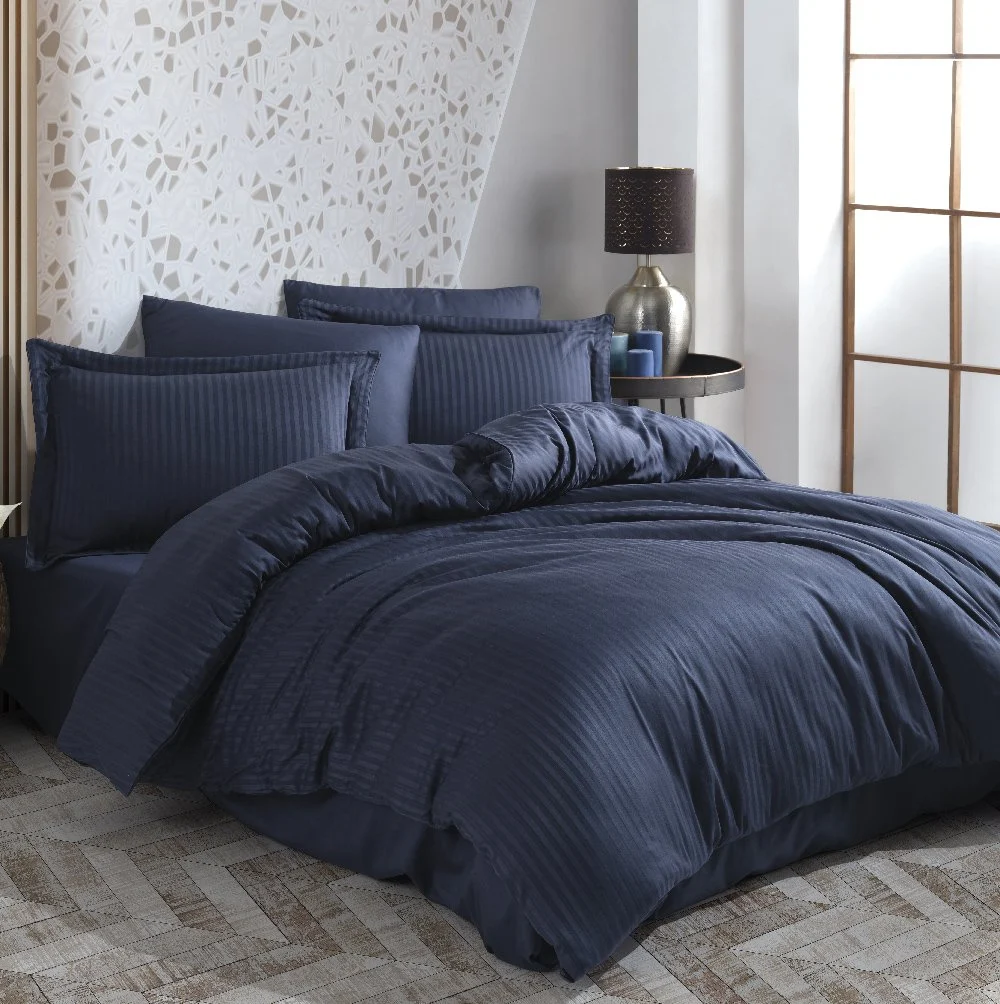 Lenjerie Premium Deluxe din Bumbac 100% Satinat, 6 piese - Hobby Diamond Damasc - Albastru