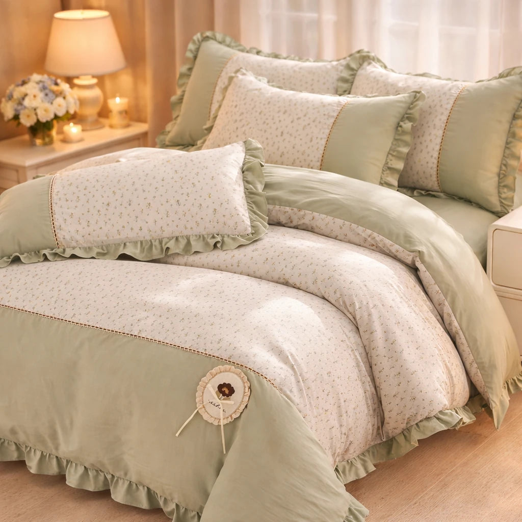 Lenjerie Premium din Bumbac Soft Touch cu Volanase 4 Piese | Cod VLN56