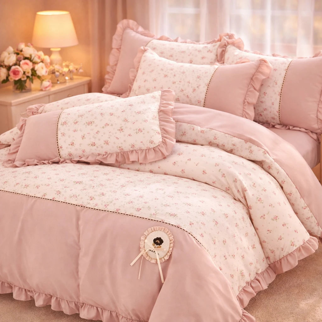Lenjerie Premium din Bumbac Soft Touch cu Volanase 4 Piese | Cod VLN57