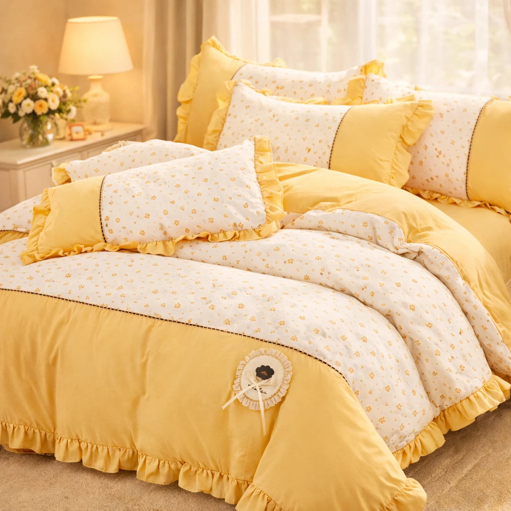 Lenjerie Premium din Bumbac Soft Touch cu Volanase 4 Piese | Cod VLN64