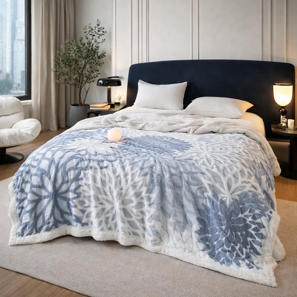 Patura Cocolino Premium Floria Soft 3D – 200x230 cm - Pufoasa si Calduroasa - Albastru