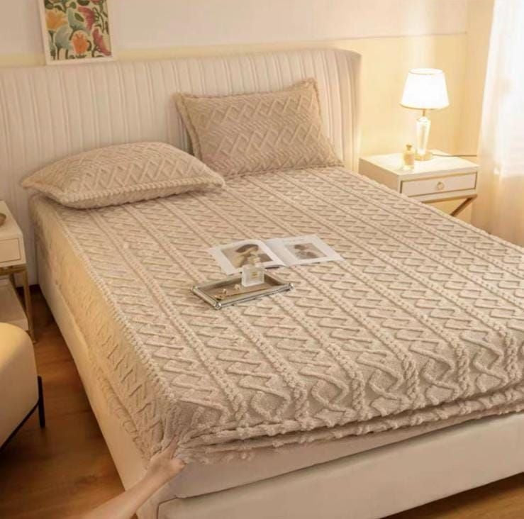 Set Husa Pufoasa de Pat Cocolino cu Elastic + 2 Fete de Perna - Bej